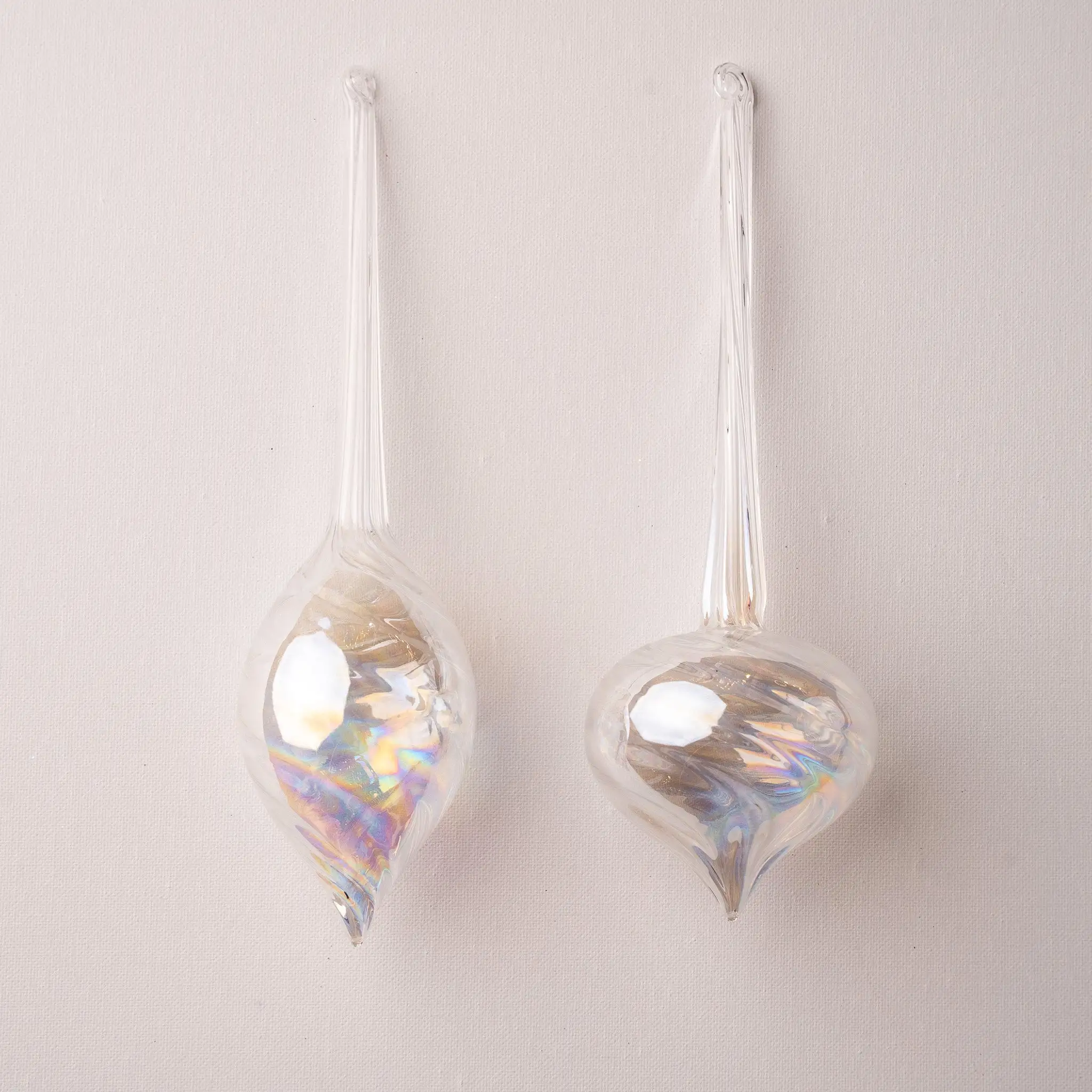 Add a lovely touch of sophiscation to your holidays with these iridescent icicle drop ornaments. The exciting glass finish of this hanging set will lend a lustrous touch to your tree.