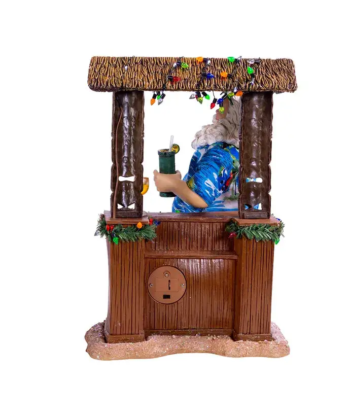 This 11″ Fabriché™ beach Santa is the perfect way to celebrate a beach holiday! Santa can be seen relaxing at the tiki bar enjoying a cold drink. Ready for a day at the beach, Santa is wearing a traditional Hawaiian shirt, shorts and or course flip flops.