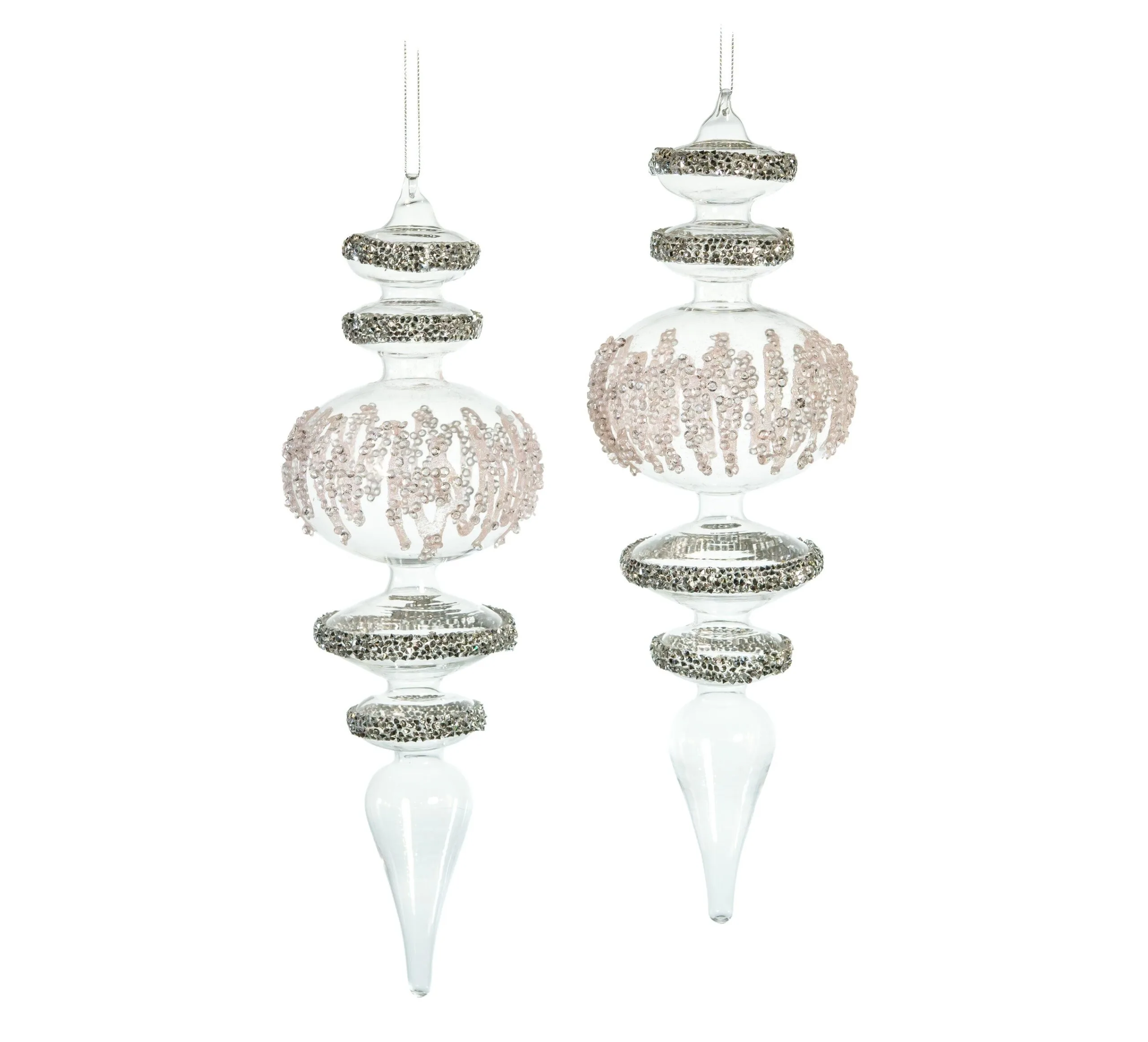 13″ Crystal Finial With Glitter Ornament Set Of 2