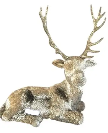 Our lying deer is simply breathtaking! Designed after one of nature’s most majestic creatures, this beauty measures an impressive 30″. He lies gracefully with his glorious antlers held high while his entire silhouette shimmers, as it is encrusted with bead-like fibers of soft champagne gold. The size and color palette make him ideal to place at an entrance, in front of your Christmas tree, or anywhere he would be on full display. Regal and elegant, this deer is sure to be a dazzling addition to your holiday decor!