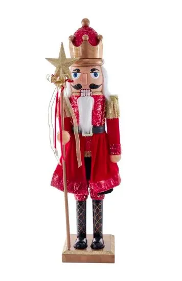 Introducing the 2.5 FT Red & Gold King Nutcracker – the perfect addition to your holiday decorations! He stands tall in his red and gold regalia, with a star staff in hand and a stunning red sequin cape. Add a touch of festive cheer to your home with this jubilant nutcracker!