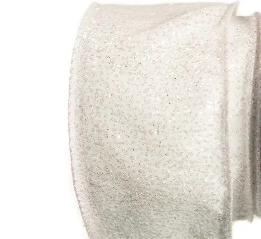 Add a touch of sparkle to your packaging and embellishments with glittery canvas ribbon. This ribbon is 2.5″ wide and features grains of white glitter on one side of a lightweight fabric body. Glitter ribbon is the perfect accent for retail product presentations, decorations, gift giving, and crafts.