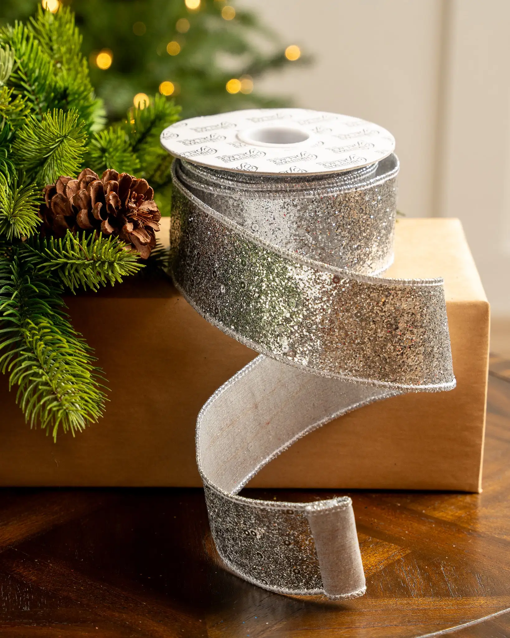 2.5″ X 10YD Silver Full Glitter Ribbon