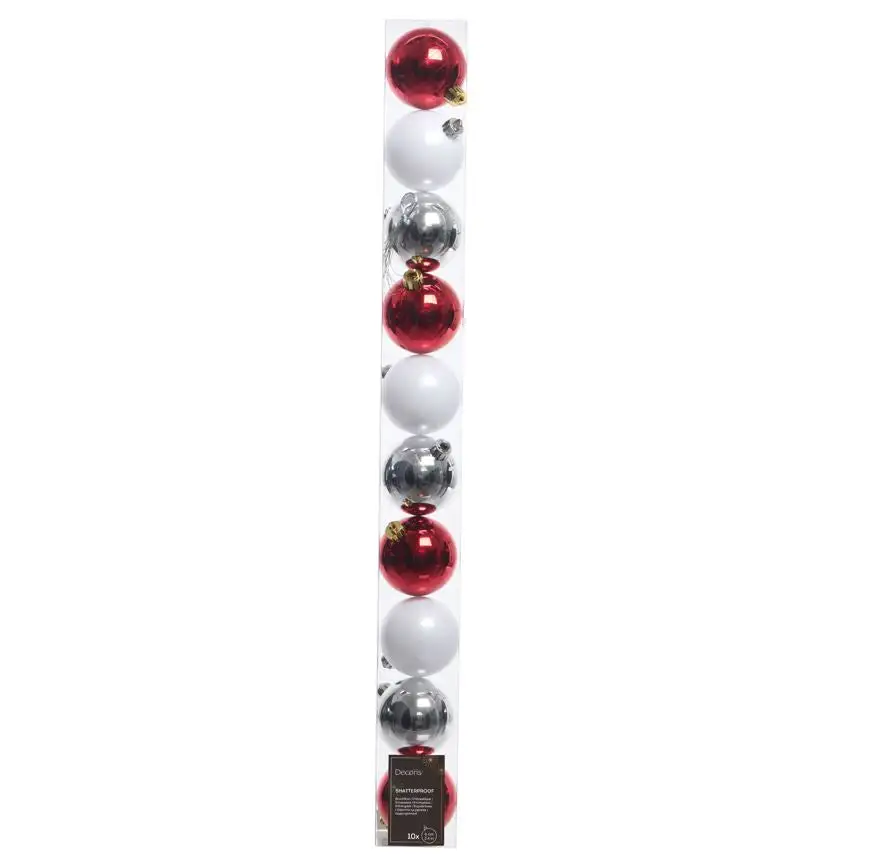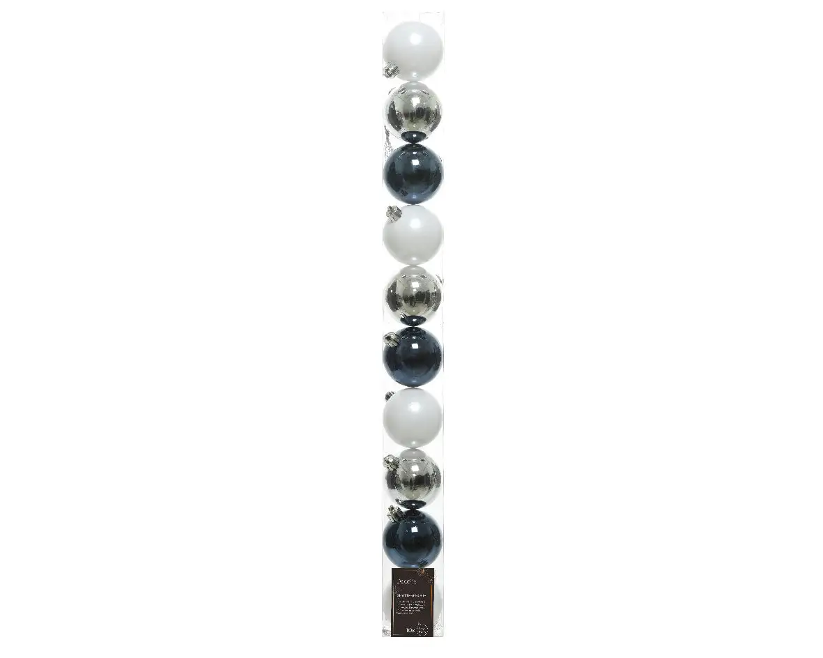 Bring home these dazzling ornaments to add a festive appeal to your decor. With a vibrant hue and shiny, matte, and glitter finish, they will add a sparkle to your interiors. Use them to add a pop of color to your tree or as accents in a decorative bowl. This 50 piece set comes in 5 tubes consisting of 10 ornaments, which provide 3 shiny, 3 mattes, and 4 glitter in each. They are shatterproof and come ready to hang.