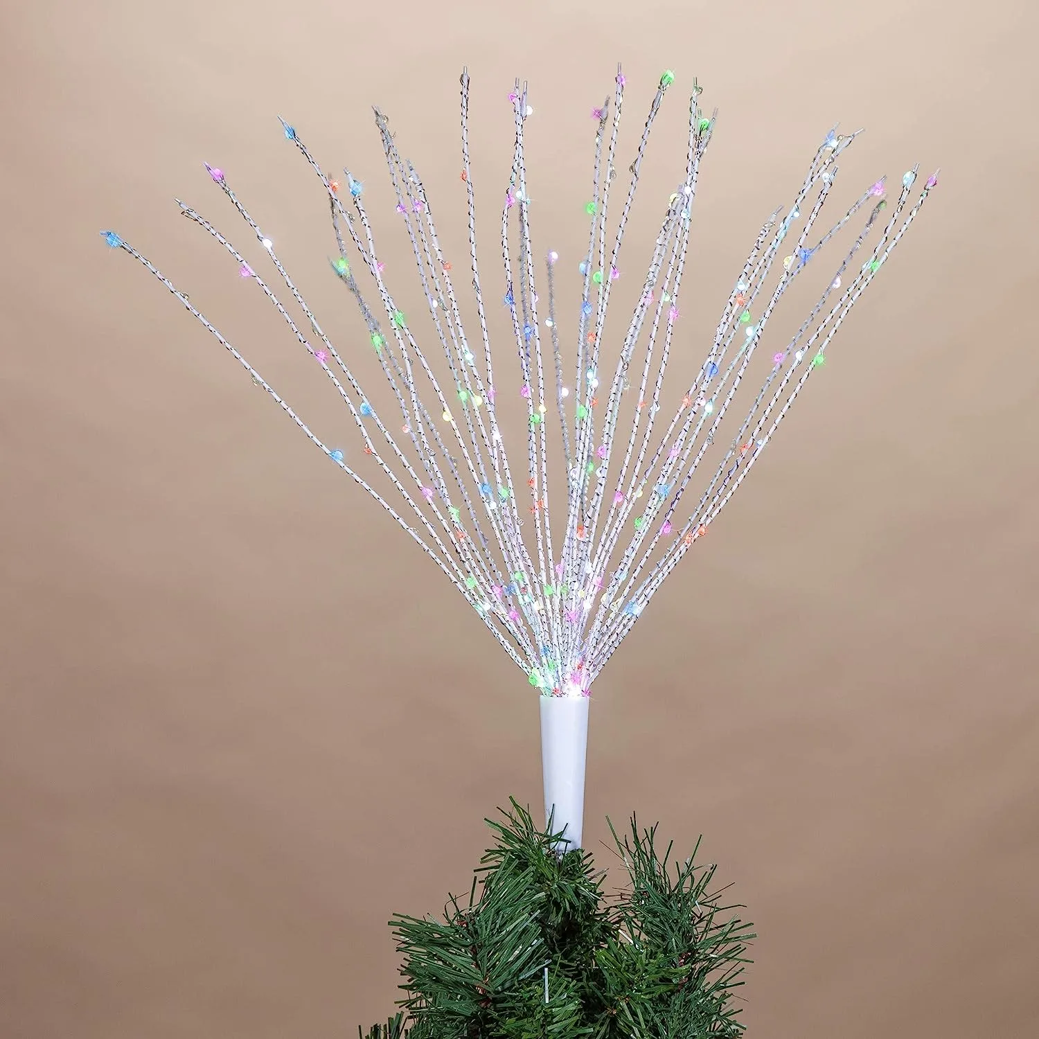 Top off your Christmas tree with a spectacular light show! Our most requested led Starburst tree topper gives a modern twist to a Christmas classic! Featuring a cluster of silver wires fitted with multicolored LED lights. These beautiful lights will create glowing beams of light in a rainbow of color, an effect that is truly magical!