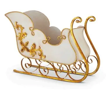 Give your home that perfect holiday feel with this truly elegant 24.5″ white sleigh and its gilded iron runners. This piece stands out with its sturdy iron construction and measures 24.5″ L X 8″ W X 16.5″ H. Add the perfect festive touch to your home and enjoy it for years to come! Wow your guests with this charming sleigh — guaranteed to create holiday cheer!
