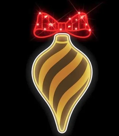 This LED Ornament Finial topped with a red LED bow recreates a familiar piece of holiday décor and magnifies it to a more impressive size. It recreates the shape using a beautifully detailed frame and red and white LED lights.