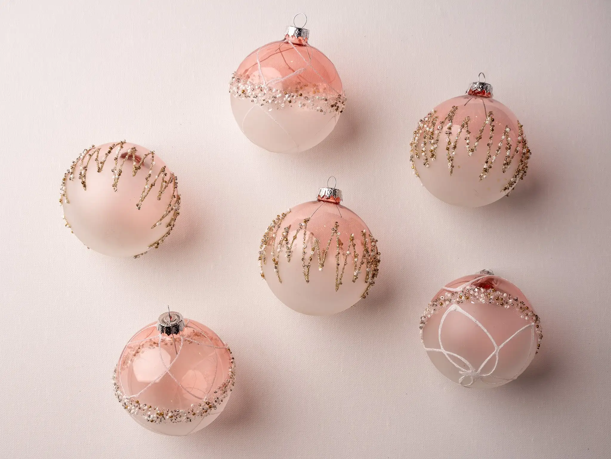 3″ Pink & Gold Accented Glass Ball Set Of 12
