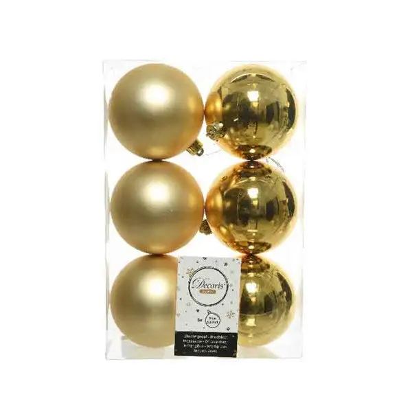 Our shatterproof ornament sets will ignite feelings of nostalgia this holiday season! Combining the beauty and luster of glass with unbreakable practicality and designed in a classic round shape, these gold ornaments bring an element of sophistication to any decorating theme. The set includes 6 boxes of 6 ornaments, 36 total, in an assortment of shiny and matte finishes. Available in multiple colors.