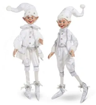 Light up your space this winter with this set of two 30″ White & Silver Posable Elves! Made of polyester and resin and featuring a winter frost theme, these decorative figures will add a feeling of twinkling delight to your holiday decoration. Spread the cheer of the season!