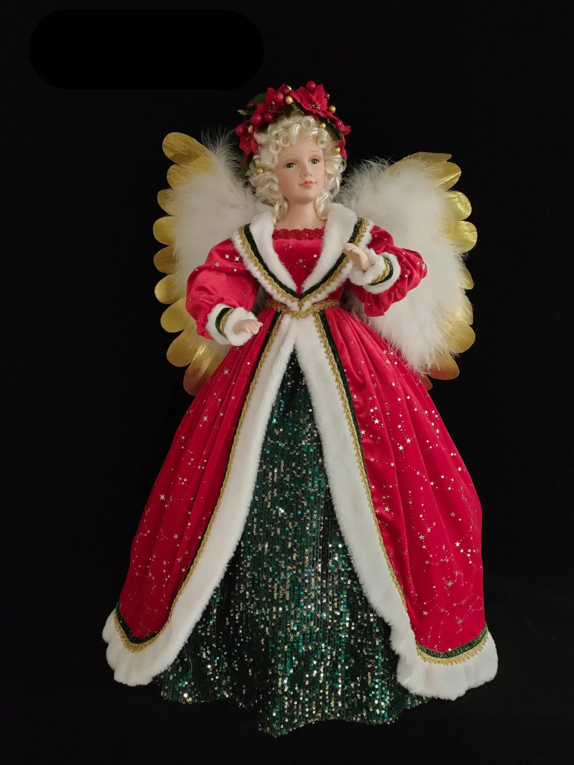 This angel features a beautiful, elegant dress of red and green fabric, playing a soothing melody for a peaceful atmosphere. Its charming design and gentle music make it a perfect addition to any holiday display.