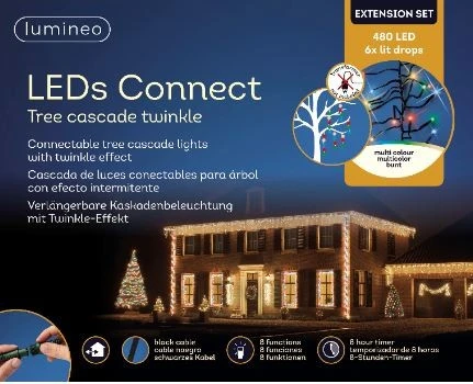 39 FT Cascade Extension Set Multicolor With 6 Strings Of 480 LED Lights