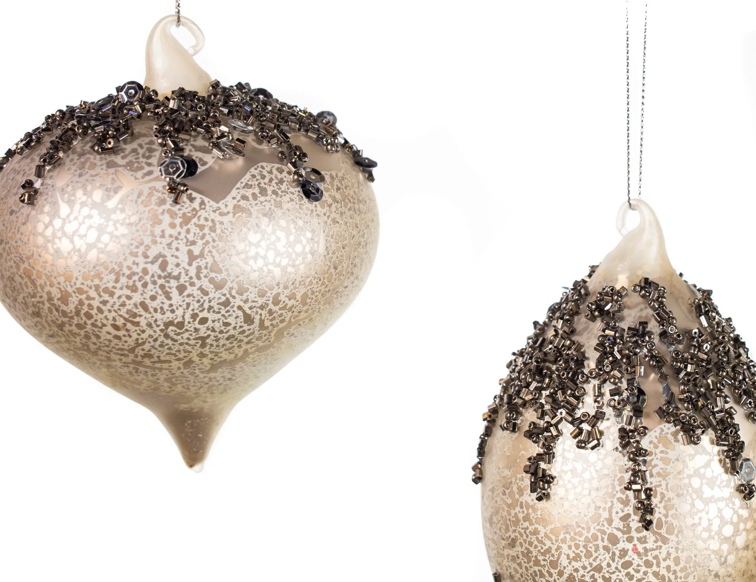 Add a touch of lovely flair to your holiday decor this Christmas season with this set of gorgeous glass ornaments! Perfect to hang in your tree, on wreaths, or around your home.