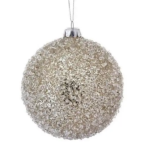 Bring shimmering style to your Christmas tree with this embellished ornament. Features a platinum glitter ball ornament that has been bedazzled with beads, and faux ice. A great addition to any decor theme.