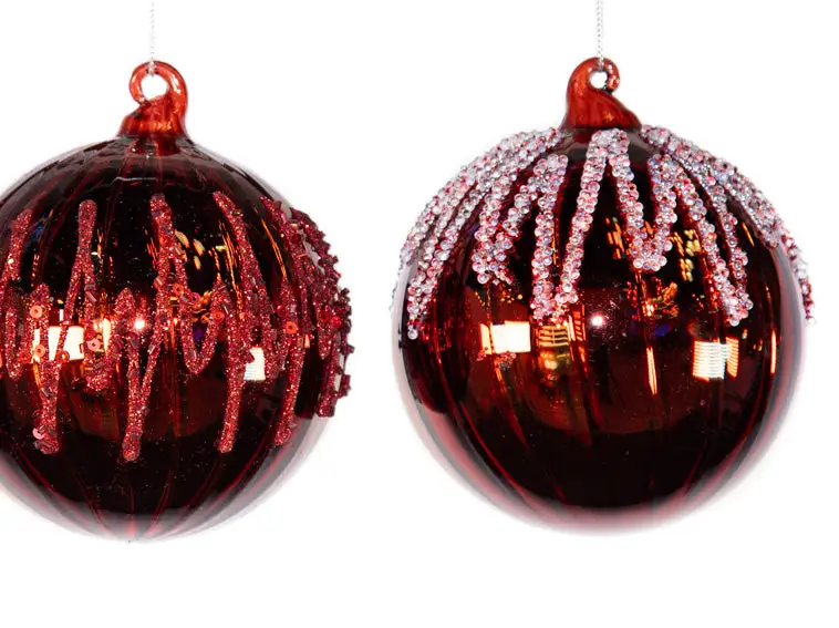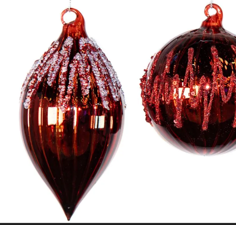 Add a touch of glitz and glamour to your holiday decor this Christmas season with this set of gorgeous glass ornaments! Shades of red are perfect to hang in your tree, on wreaths, or around your home.