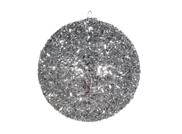 4″ Silver Tinsel Ball Ornament Set Of 12