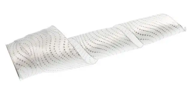 4″ X 10 YD White & Silver Polka Dot Ribbon