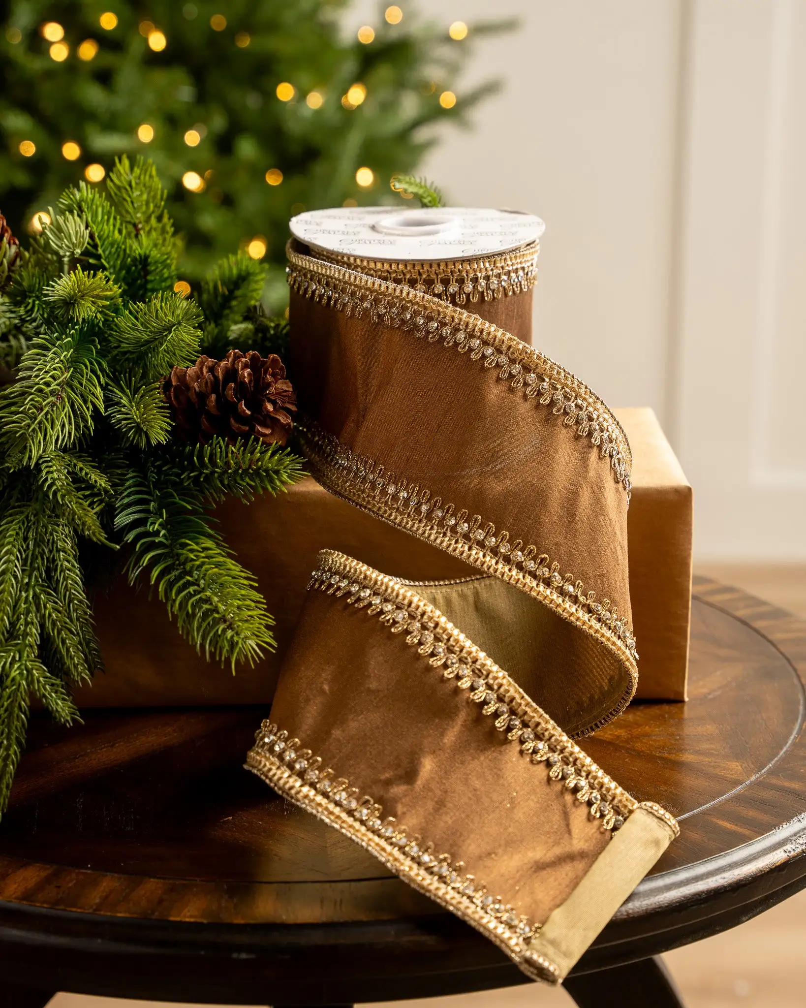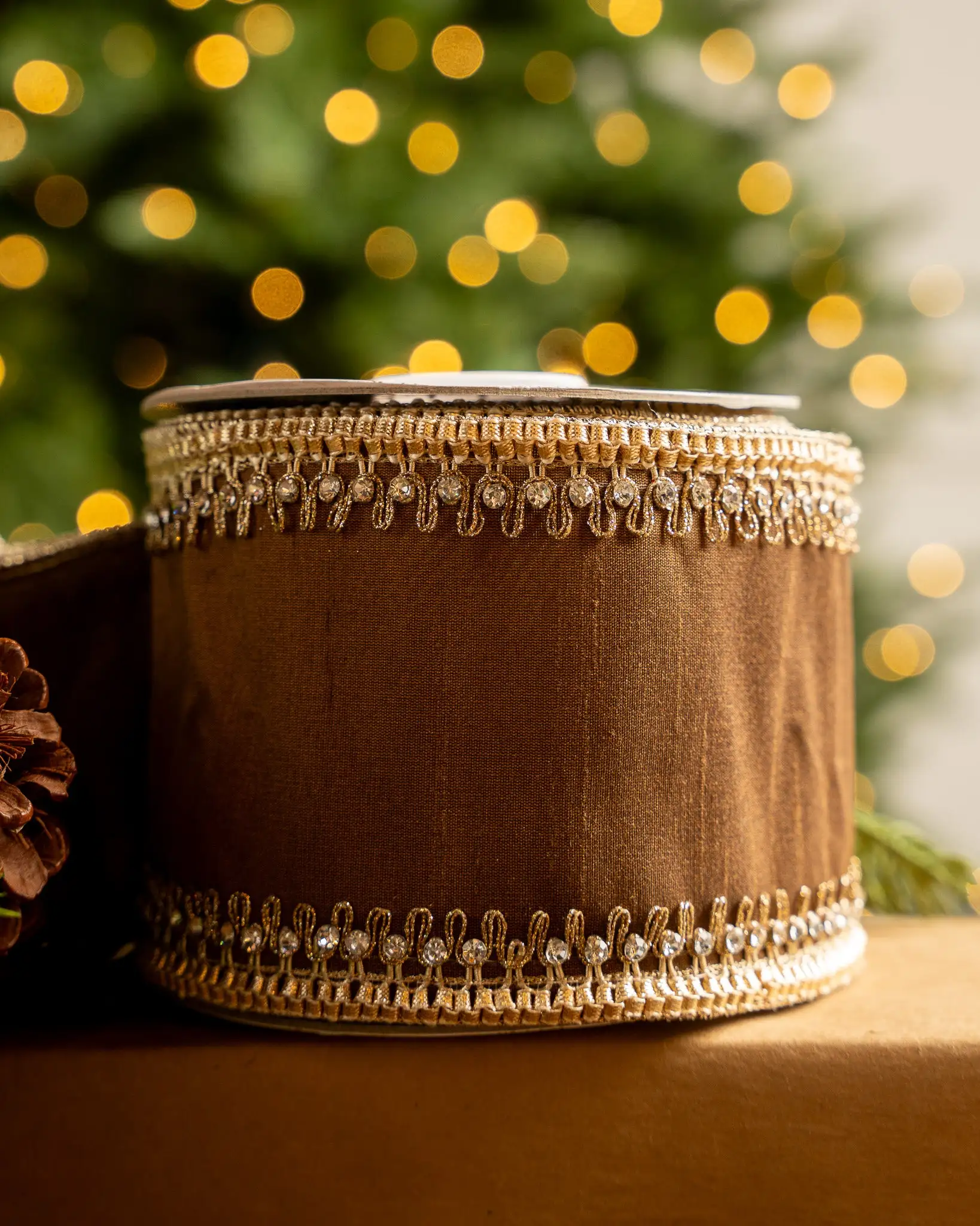 4″ X5YD Brown With Gold Crotchet Trim Edge
