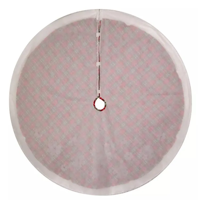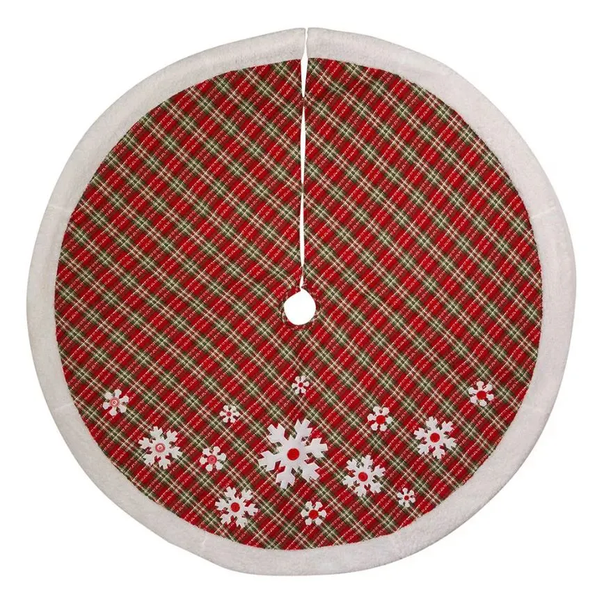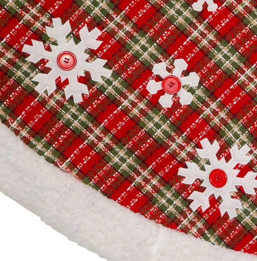 48″ Red & Green Plaid Tree Skirt With Snowflakes