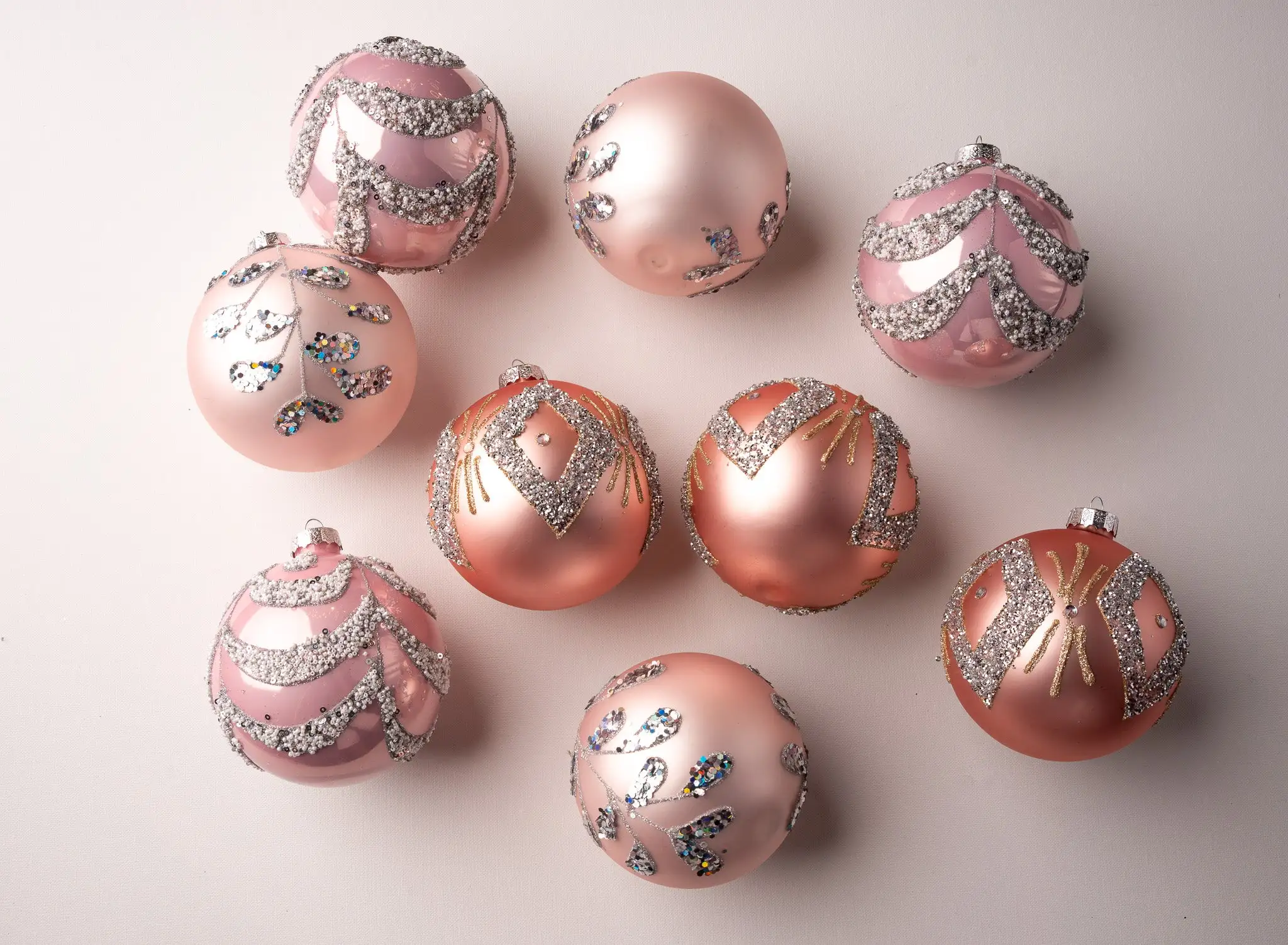 5″ Blush Pink Jewel Ball Ornaments Assorted Set Of 9