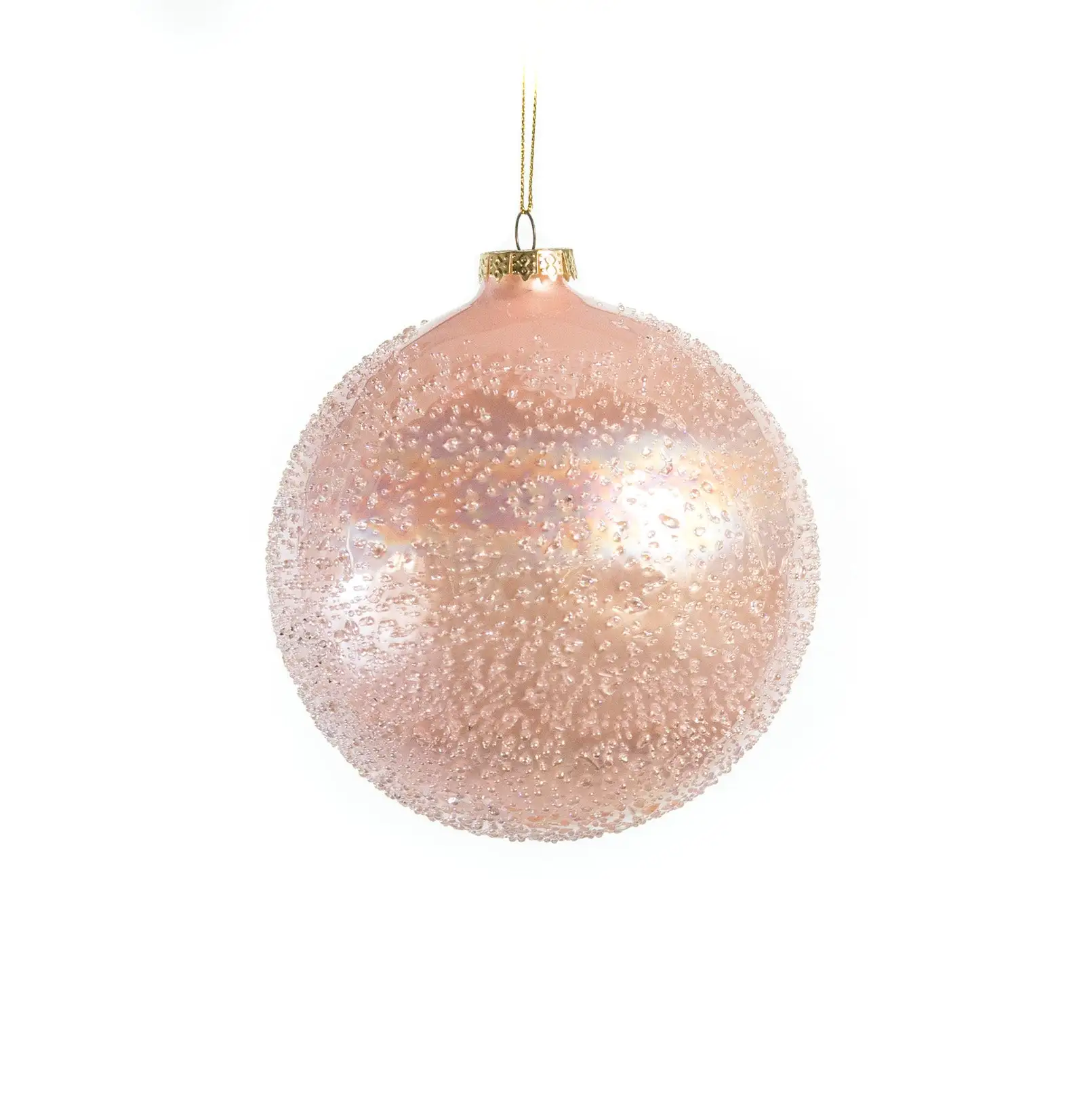 These striking ball ornaments are simply attractive! They feature a soft pink color along with faux sugar for an eccentric look. Hang them anywhere you like; they will become the point of attraction of the room. Your guests will be amazed by their colorful texture!