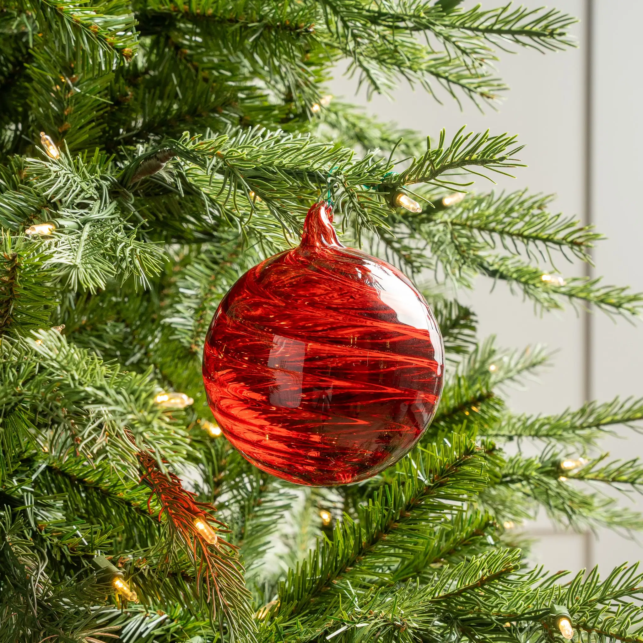 Crafted from beautiful red colored clear glass, these ornaments feature a stunning spiral design, adding a captivating touch to any space. Put them on your tree, wreath or mantle for a dazzling display!