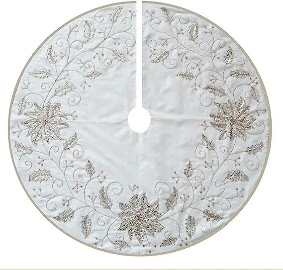 This 54-inch Ivory Snowflake Tree Skirt is a fun and festive addition to any holiday décor. This tree skirt features an ivory design with gold holly leaves and flower detailing. It is accented by a gold trim.