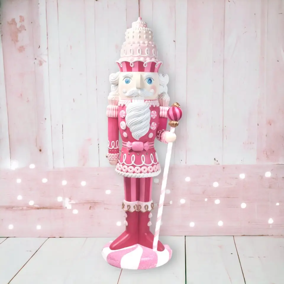 Bring fun and festivity to your next event or holiday gathering with this majestic 6ft pink candy-themed nutcracker! He is made of commercial grade resin, so you can rely on him as your go-to decoration winter after winter. Celebrate in sweet style!