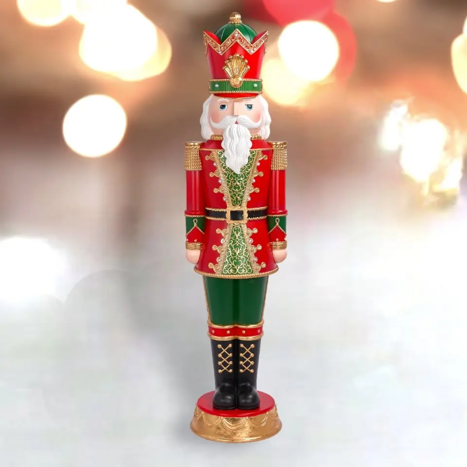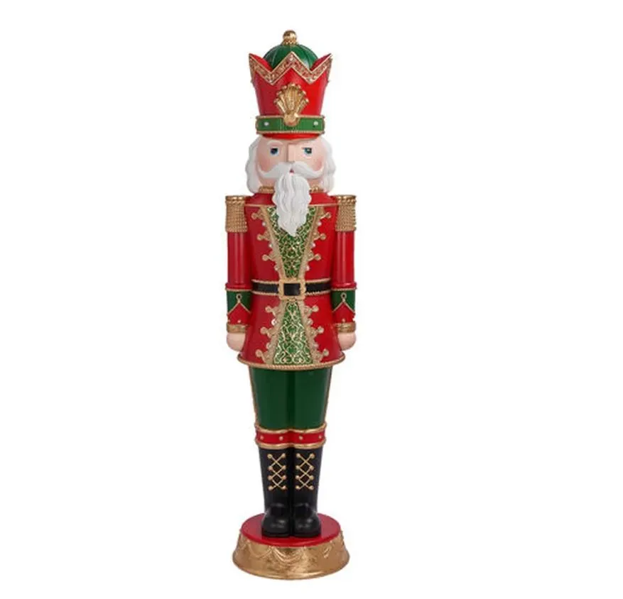 Greet your holiday visitors with a magnificent 6 FT Red & Green Nutcracker! Made with traditional red and green colors plus gold metallic accents for extra holiday flair, this commercial-grade showstopper is sure to stand out! With its longlasting materials, it’s the perfect way to spread some holiday cheer!