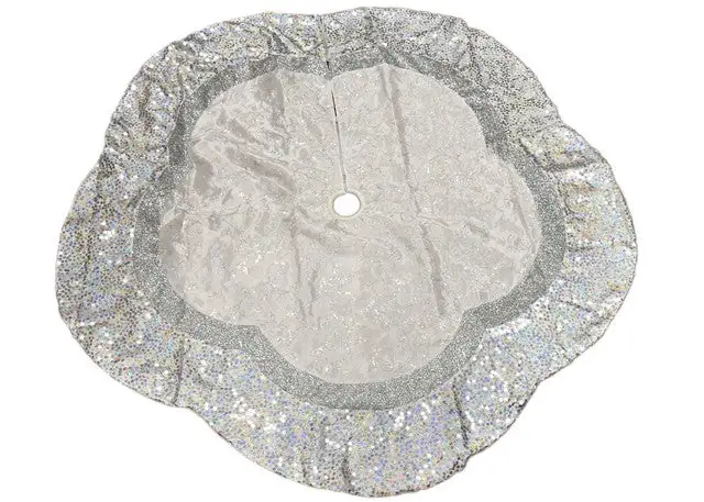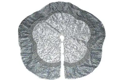 Give your Christmas tree the perfect finishing touch with our silver Sequin Edge tree skirt. It features silver and white satin fabrics in a beautiful scalloped shape. It is finished with lovely details, such as sparkling silver sequins and trim. The luxe fabrics and embellishments create an elegant appearance that is sure at add sophisticated style to your tree!