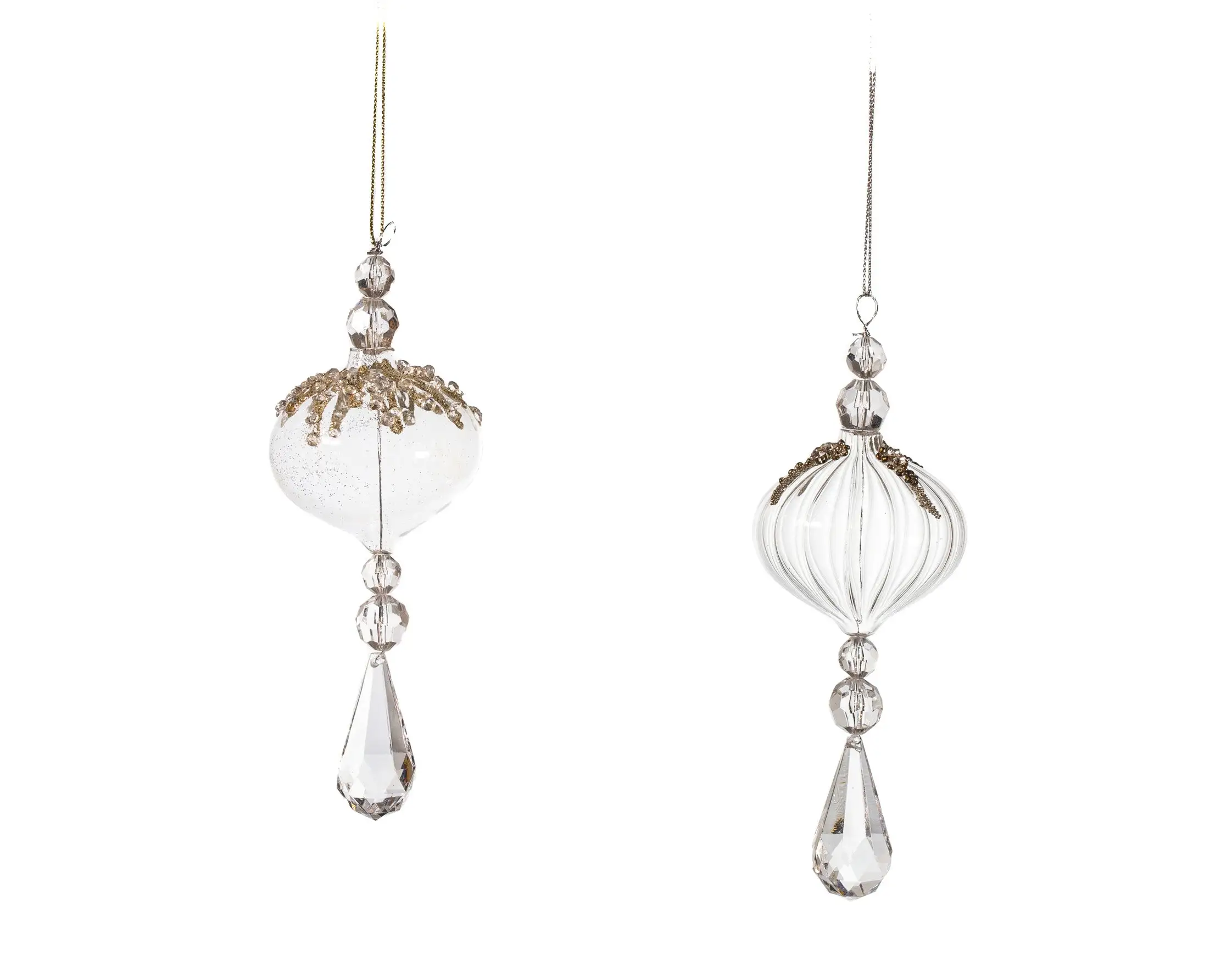 Get ready to give your holidays a flair of vintage elegance with these assorted glass drop ornaments. Accentuated with glittered sequins and beading that wonderfully adorn the tops of these glass ornaments and with jeweled drops that will catch the light- and the eyes of all your guests.