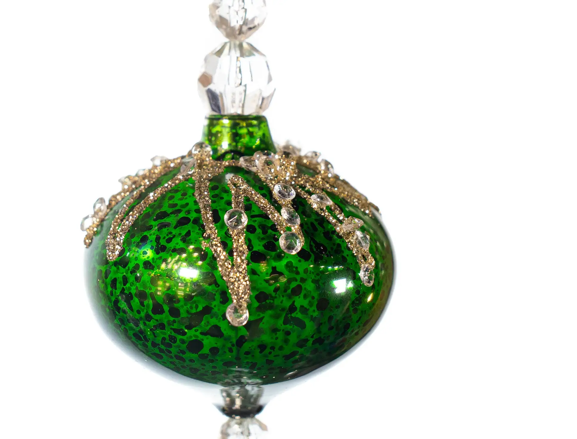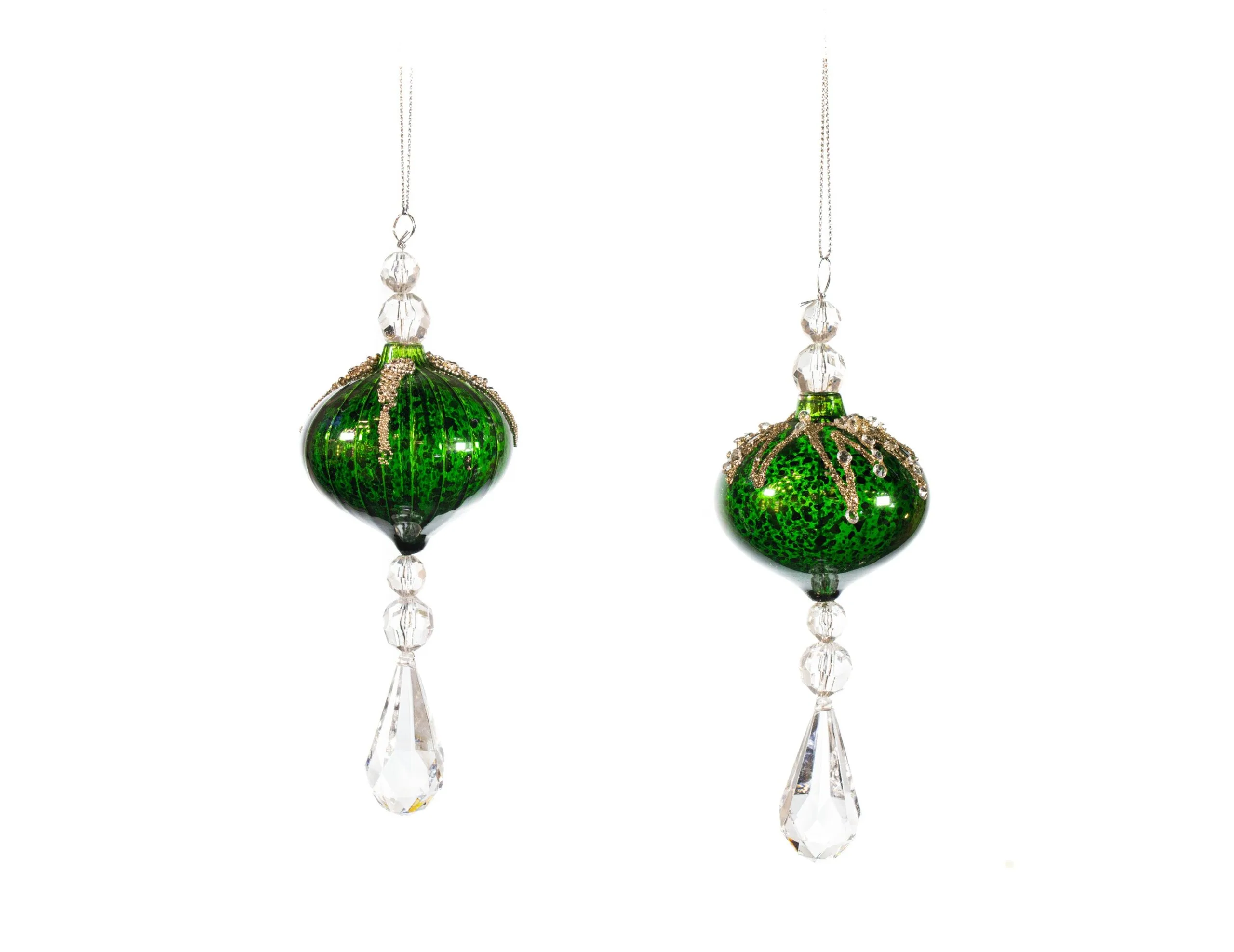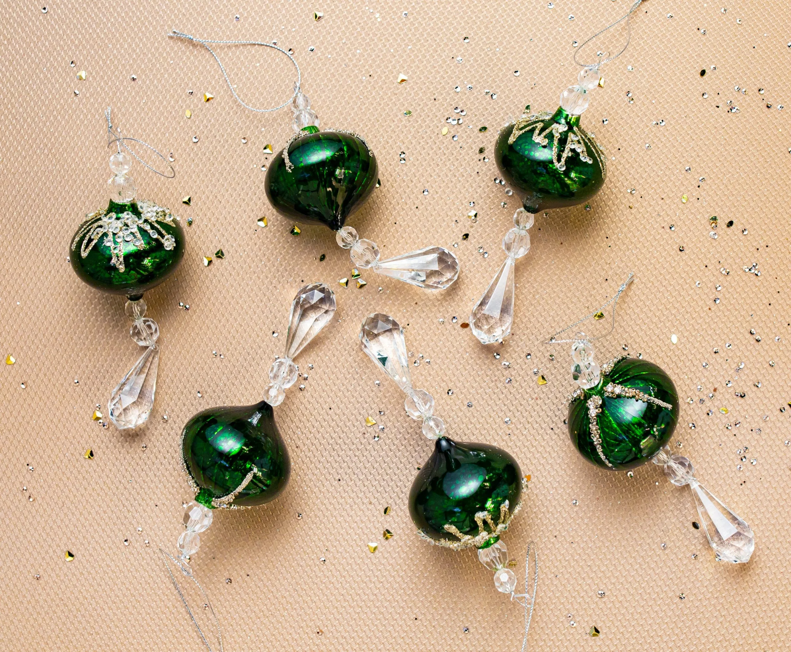Get ready to give your holidays a flair of vintage elegance with these assorted glass drop ornaments. Accentuated with glittered sequins and beading that wonderfully adorn the tops of these glass ornaments and with jeweled drops that will catch the light- and the eyes of all your guests.