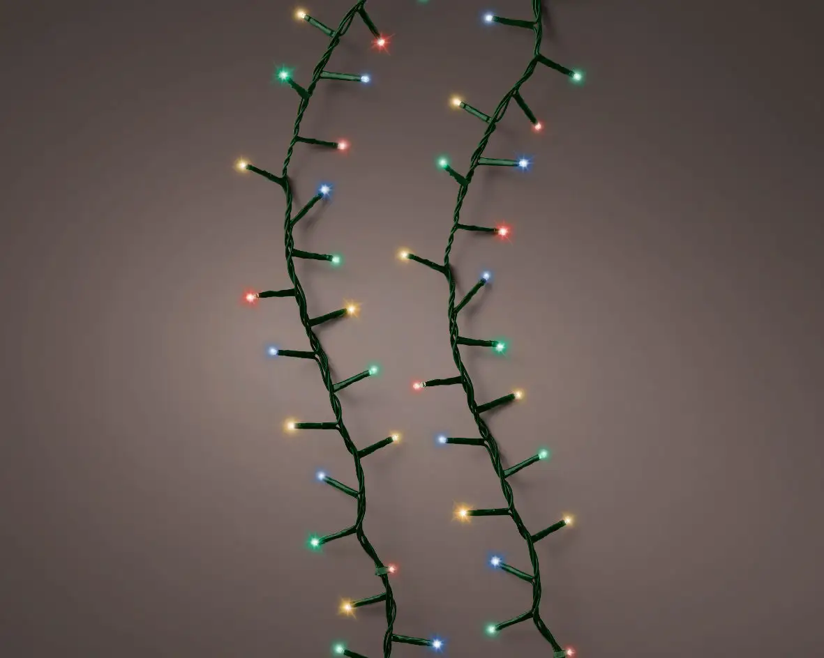 One major advantage to using LED Christmas lights is their life span and low power consumption. This means you can keep using your Christmas lights for years to come. Multicolor Compact light string on green wire with 8 different twinkle functions featuring 1000 LED lights.