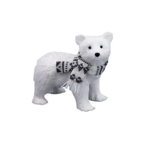 A cute little creature is raring to be part of your holiday adornments! Wearing a Nordic scarf this polar bear blends adorability and elegance.