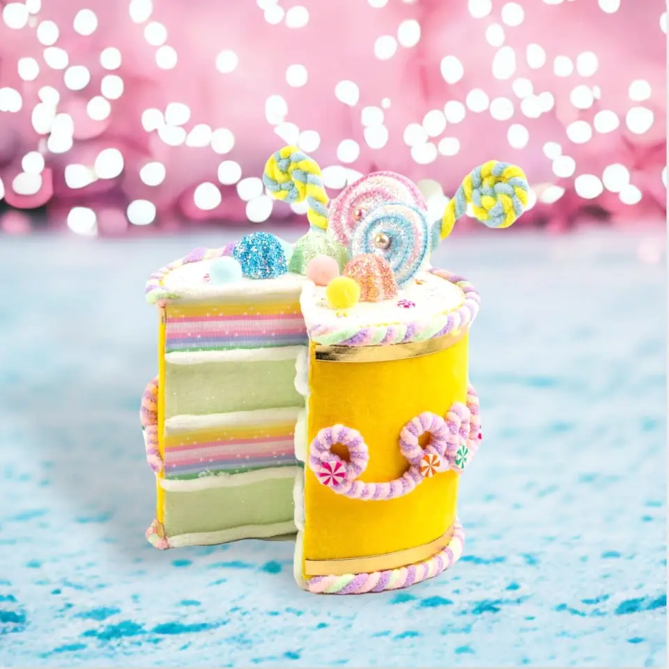 Sit back and enjoy a slice while admiring this whimisical cake display! With soft pastels and glitter that shines, it’s sure to be the focal point of any decor year round!