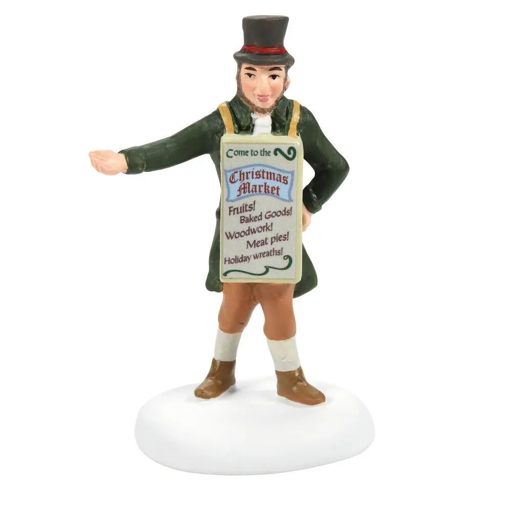 Advertising in around London in the 19th century, this “sandwich man” walked around and announced news of what is being sold at the local Christmas Market.