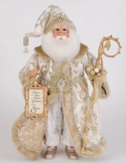 Karen Didion’s Gilded Elegance Santa is great for any shelf, mantle, and countertop. The quality is unmatched with this decorative piece’s hand-painted face, inset eyes, unique fabric, and detailed accessories. With this design’s luxurious touch and jeweled embellishments; he’s sure to add some shimmer and shine to any home.