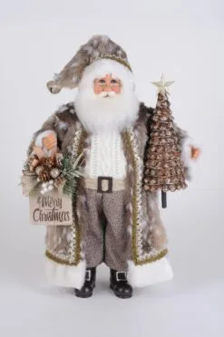 Karen Didion’s Lighted Natural Fawn Santa is great for any shelf, mantle, and countertop. The quality is unmatched with this decorative piece’s hand-painted face, inset eyes, unique fabric, and detailed accessories. With his chic woodland appearance, outdoor themed accessories, and warm design; this Christmas piece is sure to add sparkle and style to any home or cabin.