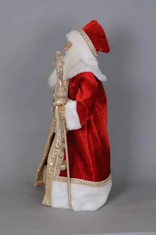 This Red and Gold Santa is great as a center or accent piece to your Christmas decor. The quality is unmatched with this decorative piece’s hand-painted face, glass inset eyes, unique fabric, and detailed accessories. With this design’s luxurious touch and exquisite design, he’s sure to add character and style to any home.