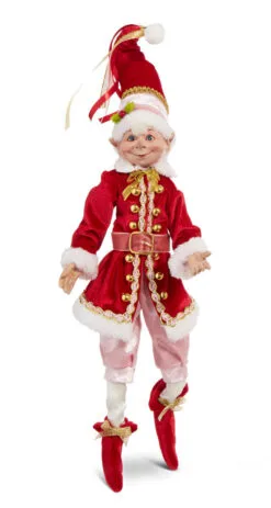 16″ Red & Gold Filigree Assorted Posable Elves Set Of 2