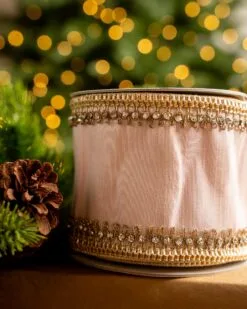 4″ X5YD Rose Velvet Ribbon With Rose Gold Jewel Trim