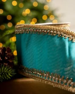 4″ X5YD Tiffany Blue With Gold Crotchet Trim Edge