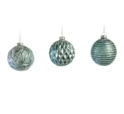 3″ Shiny Green Glass Assorted Ornament Set Of 12