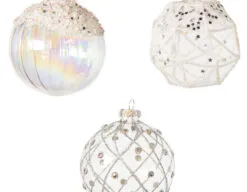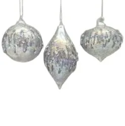 4″ Crystal Silver & Glitter Ornament Assorted Set Of 12