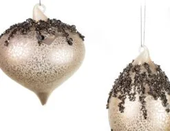 3″ Cream Decorative Assorted Glass Ornamentl Set Of 12