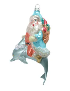 5″ Santa On A Dolphin Ornament