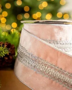 4″ X5YD Blush Pink Velvet With Silver Jewels