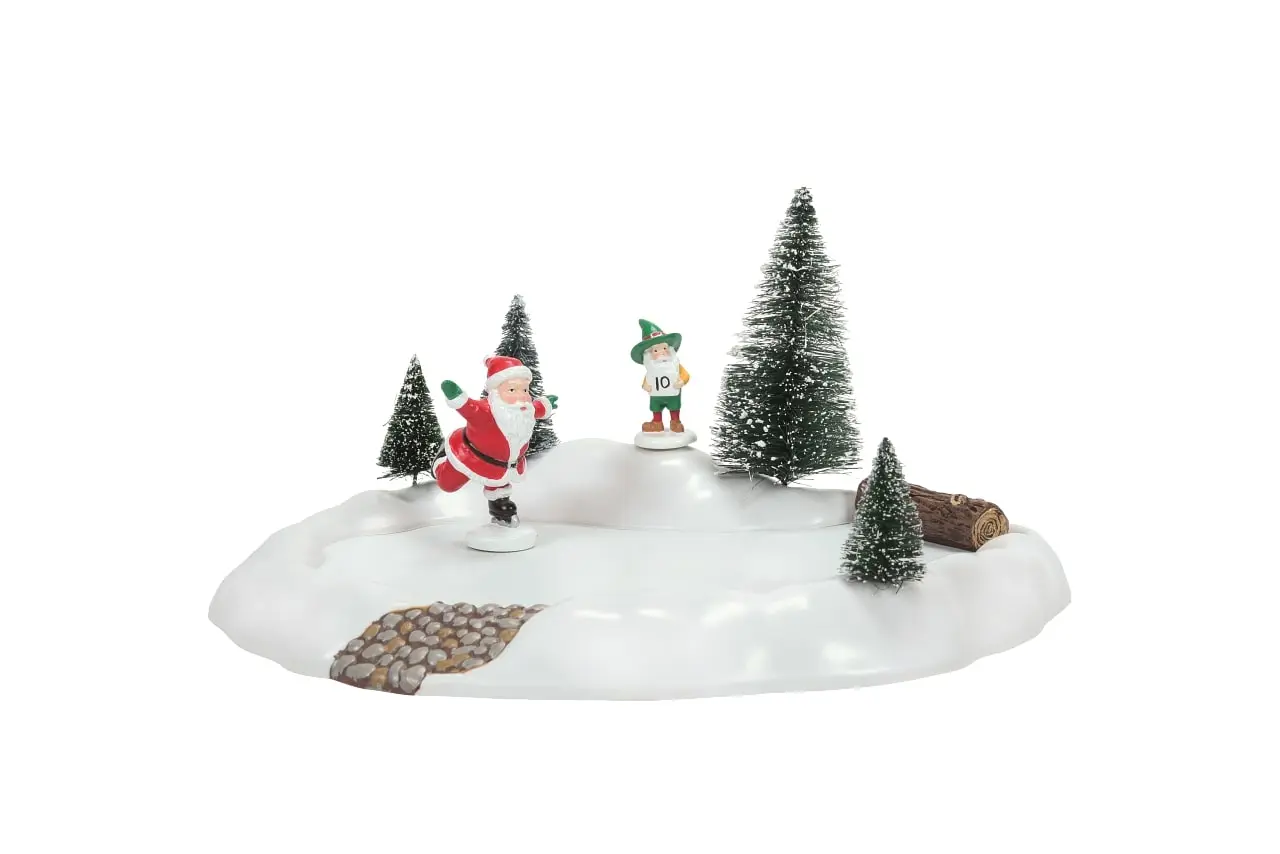 As we can see the elf has rated Santa’s moves A Perfect 10 . This animated piece will tuck into small spaces on any Village display.