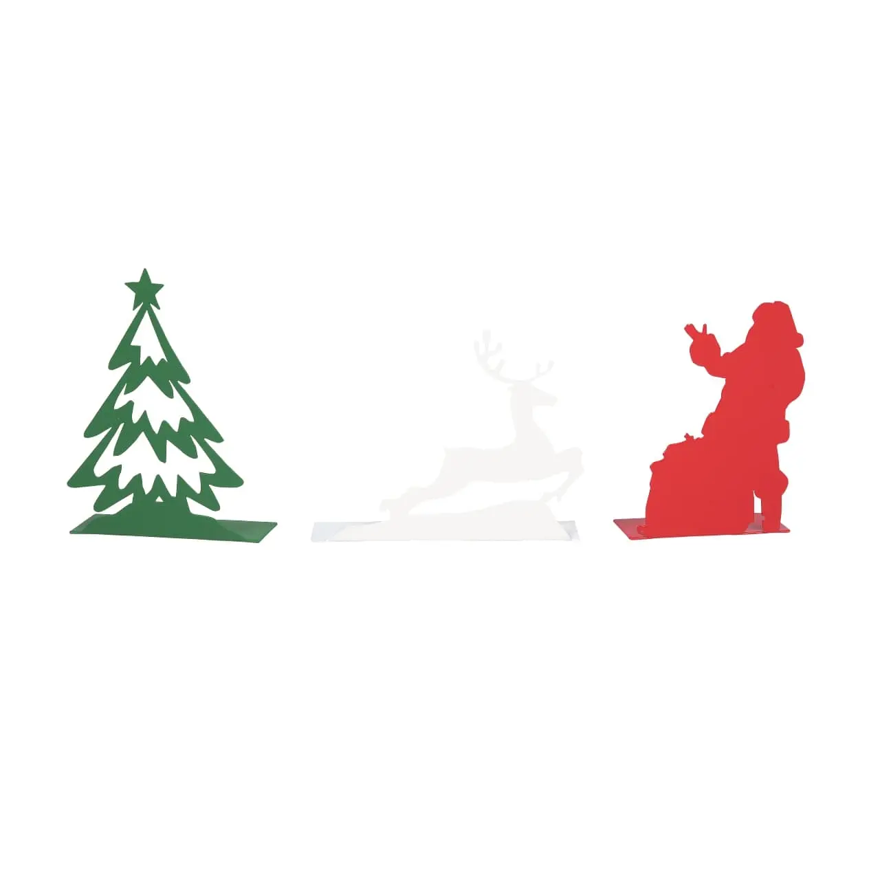 Like the popular cutout silhouettes of the 1960s, these lawn silhouette made of metal will add a festive touch to any Village lawn display. They are sold as a set of three — Santa, a reindeer and a Christmas tree.