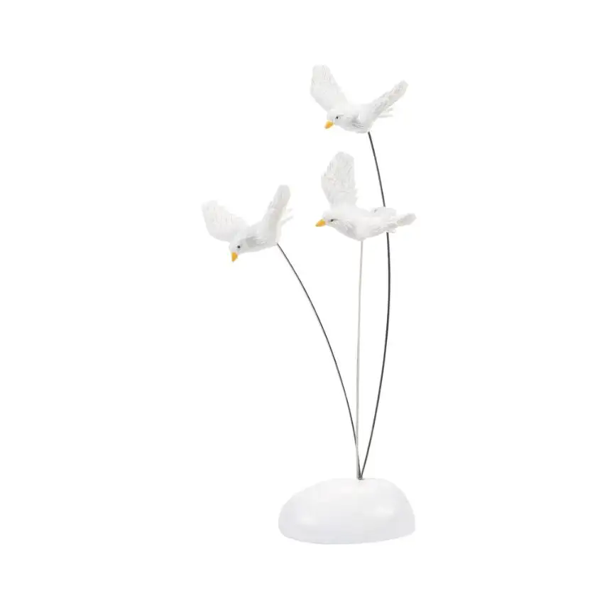 Suspended on thin wires, these three white doves appear to be taking flight. They will add movement and grace to your Village scene.
